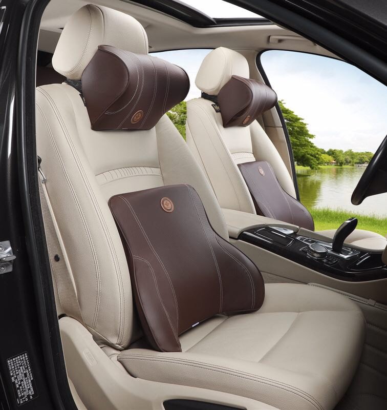 Bộ Gối Tựa Đầu, Tựa Lưng Ô Tô Cao Su Non Bọc Da