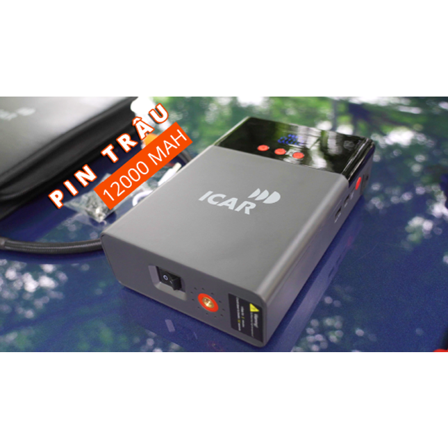 - Bơm lốp kiêm kích bình ICAR P68 được trang bị viên pin cao cấp Lithium có dung lượng pin lên đến 12000mAh siêu lớn. Dòng điện kích lên max là 800A, nên kích nổ được hầu hết các loại xe.