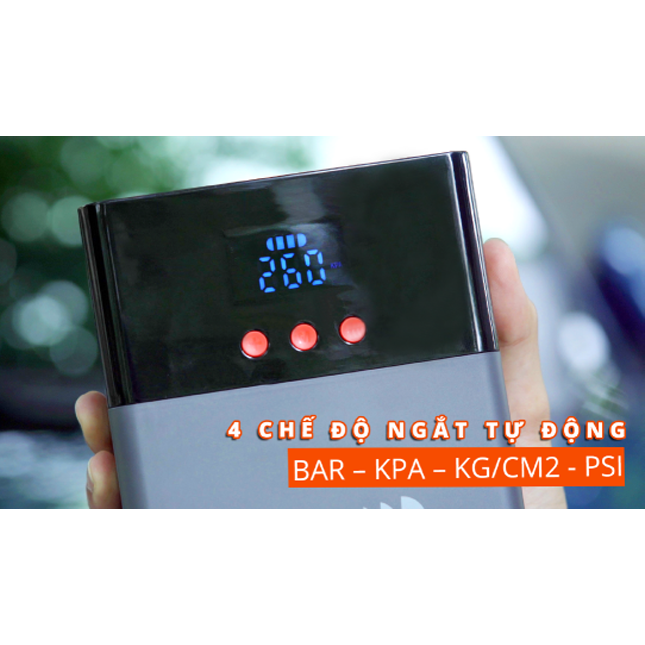- Dung lượng pin siêu lớn nên kích bình và bơm lốp được lâu hơn, thân máy được làm từ nhôm nên rất bền.