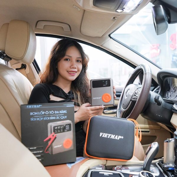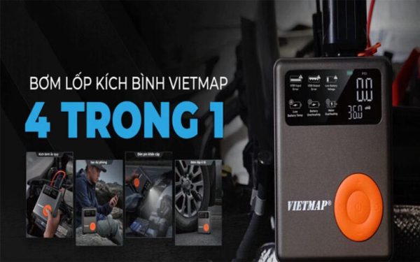 Bơm lốp kiêm kích bình ô tô Vietmap là một trong những sản phẩm rất mới của thương hiệu Việt Nam. Máy có chức năng chính là kích bình, kích nổ ô tô khi bình ắc quy bị hết điện và bơm lốp xe hơi khi áp suất lốp bị hết. Sở hữu dung lượng Pin lên đến 12000mAh cùng dòng khởi động 1000A – 2000A tương thích 99% các dòng xe cá nhân Sedan, SUV….