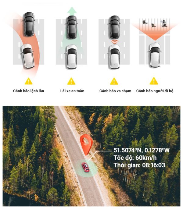 - Chức năng ADAS giúp bạn cảnh báo va chạm, cảnh báo sai làn giúp bạn kịp thời điều chỉnh tay lái… Để hành trình chạy xe của bạn được an toàn kịp thời. Những cảnh báo này đều thực hiện bằng giọng nói theo thời gian thực.