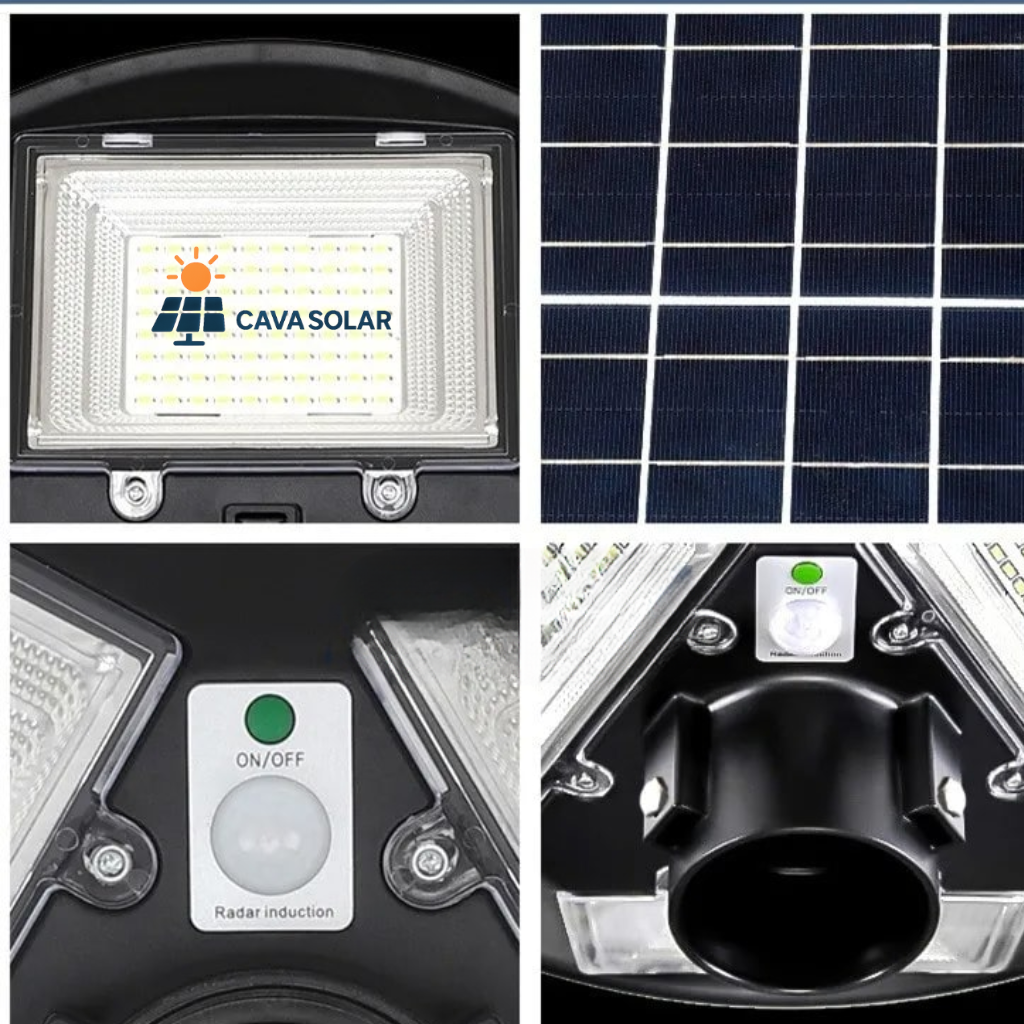 - Tấm pin năng lượng mặt trời chất lượng cao và có diện tích lớn, hiệu suất chuyển đổi năng lượng cao, đèn tích trữ năng lượng nhanh cho quá trình hoạt động tốt nhất. Ngoài ra, tấm pin còn được điều chỉnh theo hướng nhận ánh sáng tốt nhất.