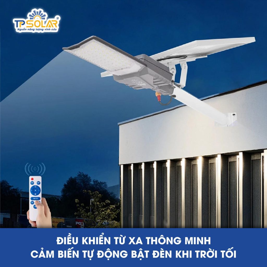 Đèn trang bị cảm biến ánh sáng tự động: tự động bật khi trời tối và tắt khi trời sáng – bạn không cần thao tác thủ công. Ngoài ra, đi kèm điều khiển từ xa tiện lợi, cho phép điều chỉnh thời gian chiếu sáng, chế độ ánh sáng, hẹn giờ… chỉ bằng một nút bấm, linh hoạt theo từng khu vực và nhu cầu sử dụng.