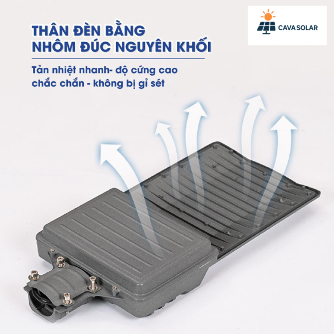 Sản phẩmlà đèn chiếu sáng sử dụng năng lượng mặt trời để chuyển hóa quang năng của ánh sáng mặt trời thành điện năng để cung cấp cho hệ thống đèn chiếu sáng ngoài trời như đường phố, lối đi, khu đô thị, sân cổng, sân vườn, công viên, đường giao thông, sân chơi thể thao, trang trại, vùng sâu vùng xa. Đèn hoạt động theo cơ chế tự sạc pin năng lượng mặt trời vào ban ngày và khi trời tối đèn sẽ tự động chiếu sáng bằng nguồn điện dự trữ trong pin sạc lúc ban ngày. Đèn được thiết kế chắc chắn, thân đèn bằng nhôm cao cấp, đèn có mắt led siêu sáng. Đầu tư một lần dùng trên 10 năm.