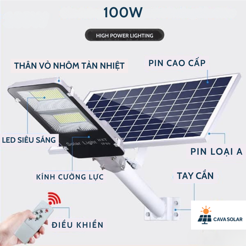 Đèn Năng Lượng Mặt Trời BC 100W Chiếu Sáng Ngoài Trời