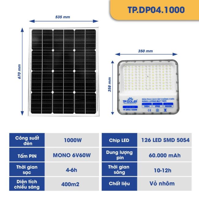 Đèn Pha Cao Cấp Chống Chói Năng Lượng Mặt Trời 1000W