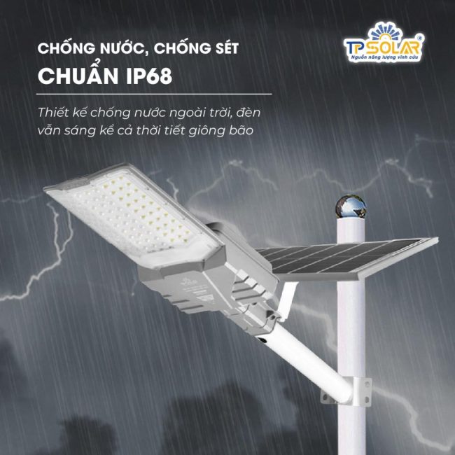 - Cấu hình vượt trội – Hoạt động bền bỉ: Trang bị pin lithium lưu trữ dung lượng cao, đảm bảo chiếu sáng liên tục từ 10–15 tiếng, hoạt động ổn định kể cả trong điều kiện mưa bão.