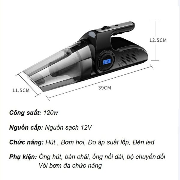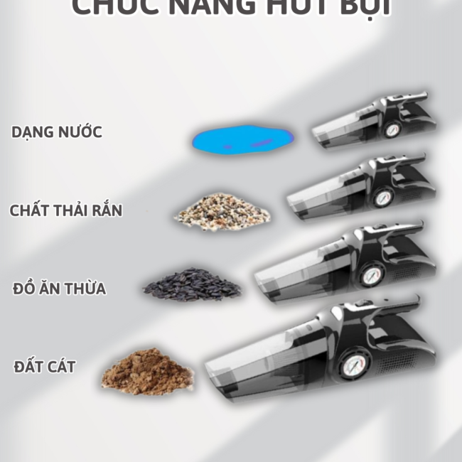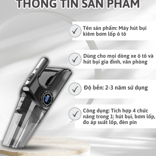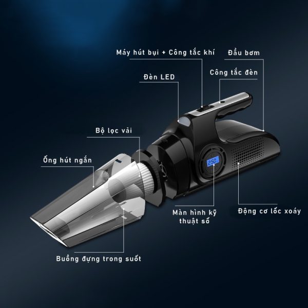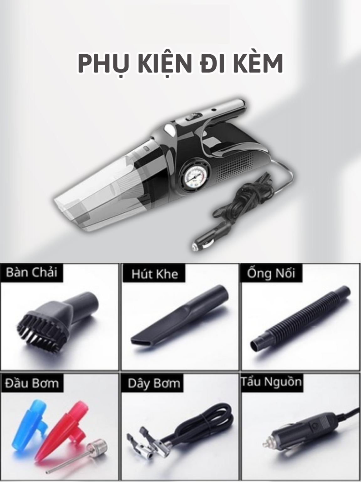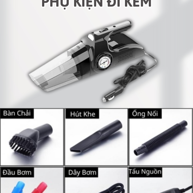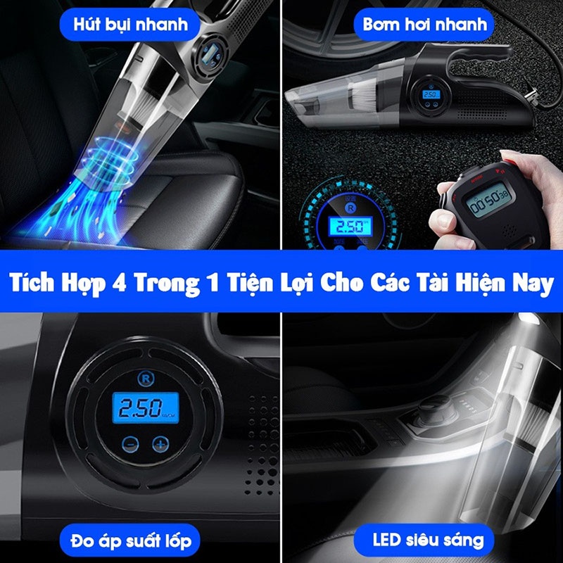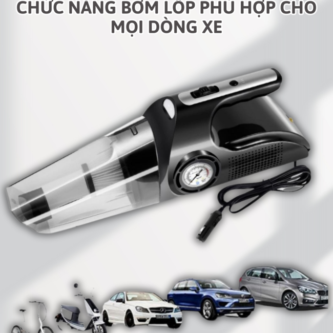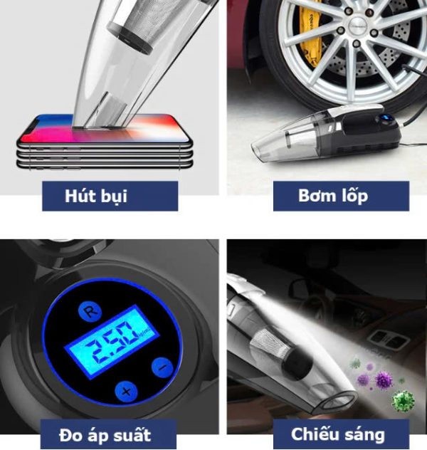Máy Hút Bụi Bơm Lốp Ô Tô Đa Năng 4 Trong 1