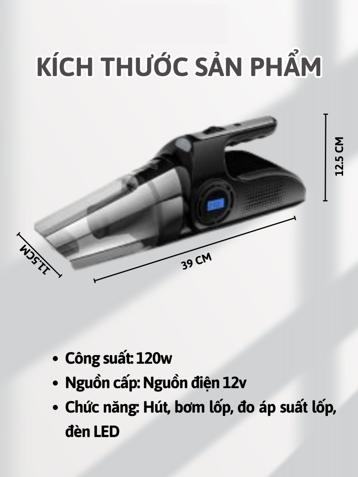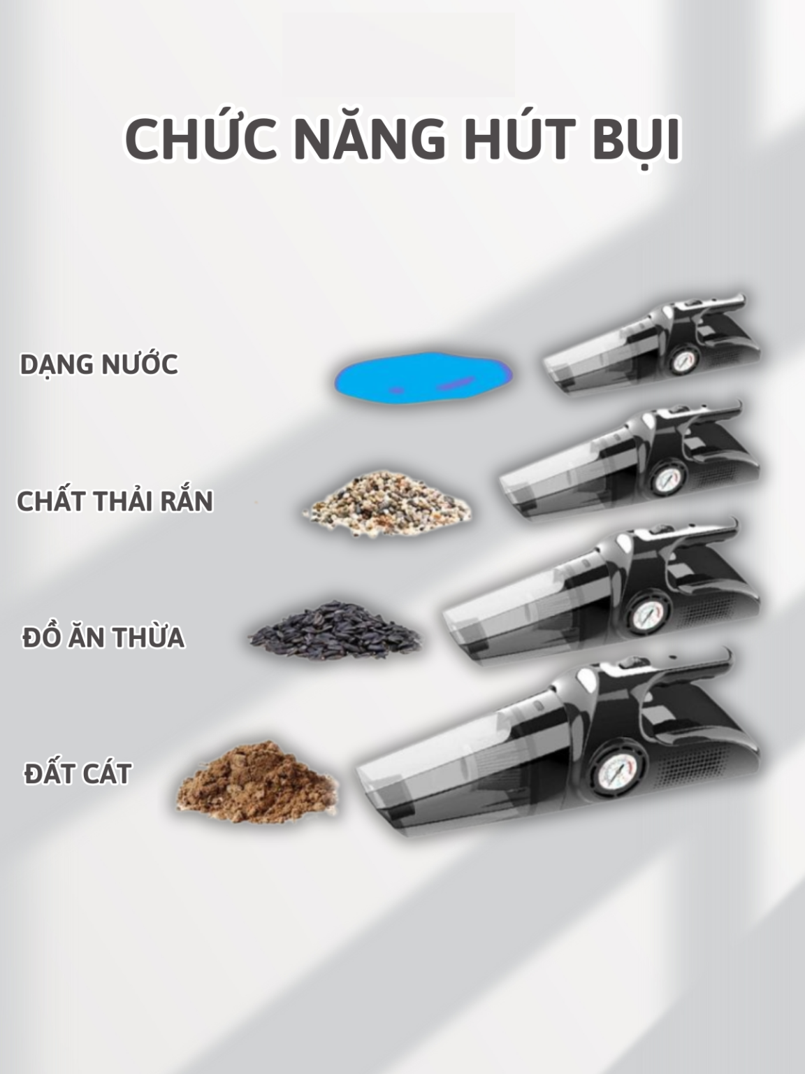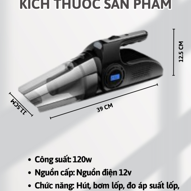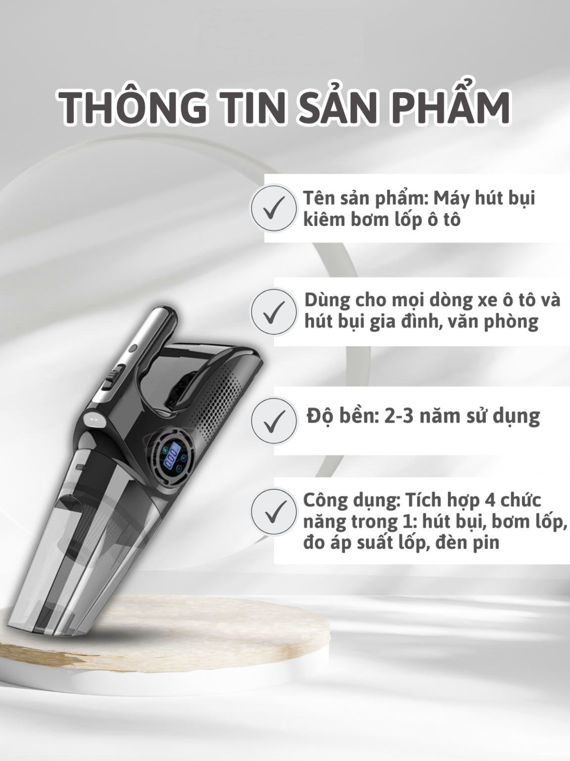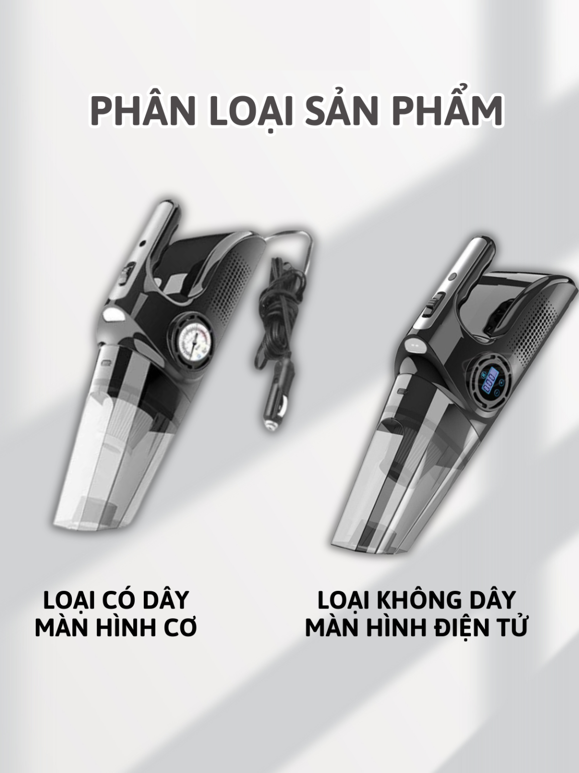 Máy Hút Bụi Bơm Lốp Ô Tô Đa Năng 4 Trong 1