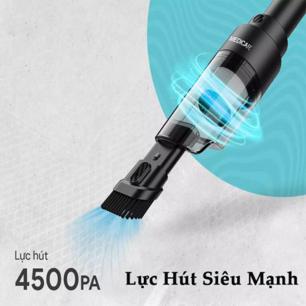 - Máy hút bụi cầm tay Medicar sử dụng nguồn điện 12V trên tẩu ô tô trực tiếp nên vô cùng tiện lợi. Công suất của máy đạt 100W mạnh mẽ sản sinh ra lực hút 4500pa nên hút bụi nhanh chóng.