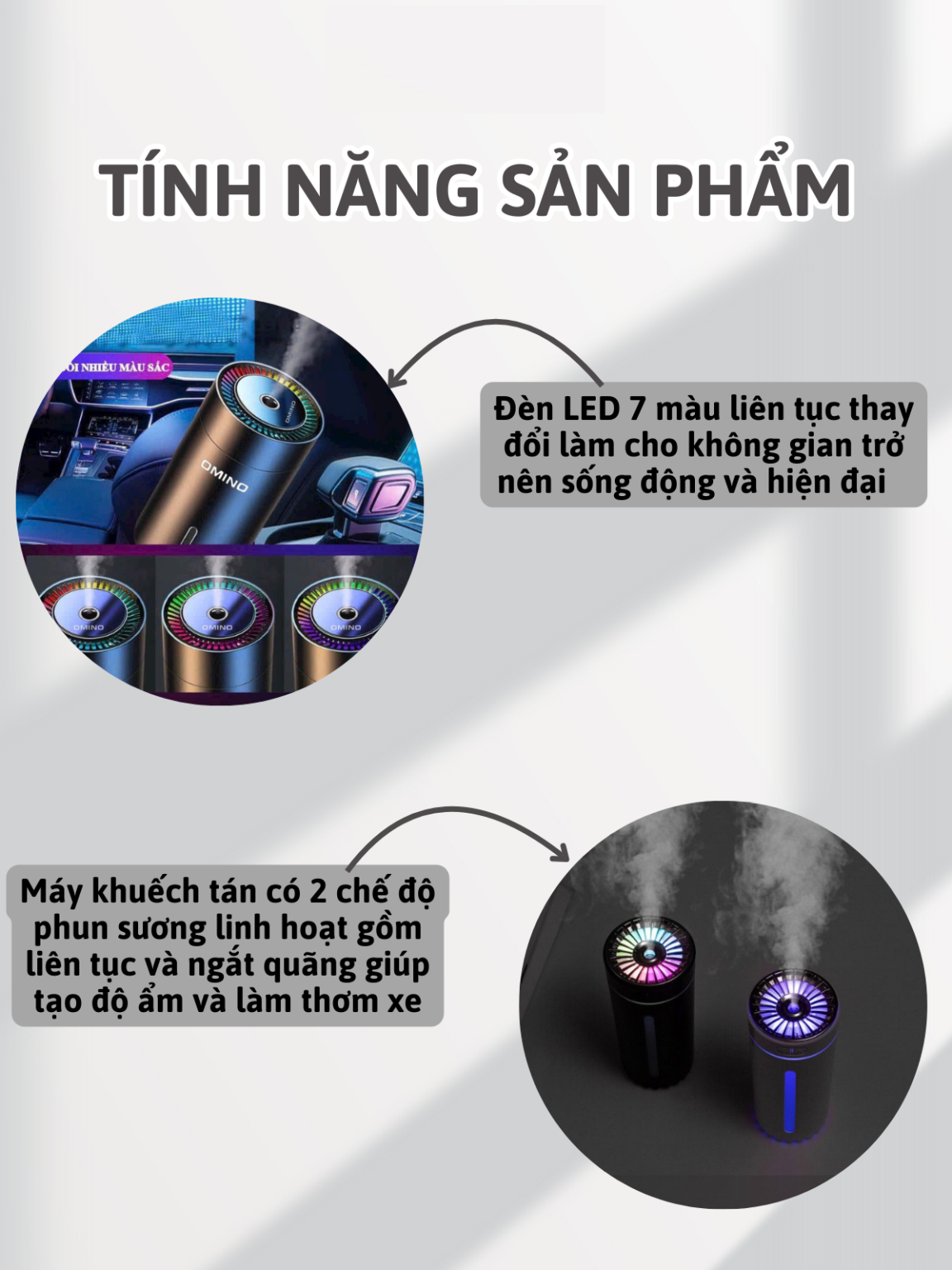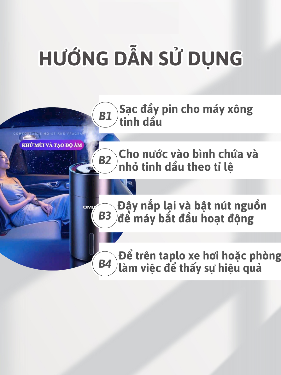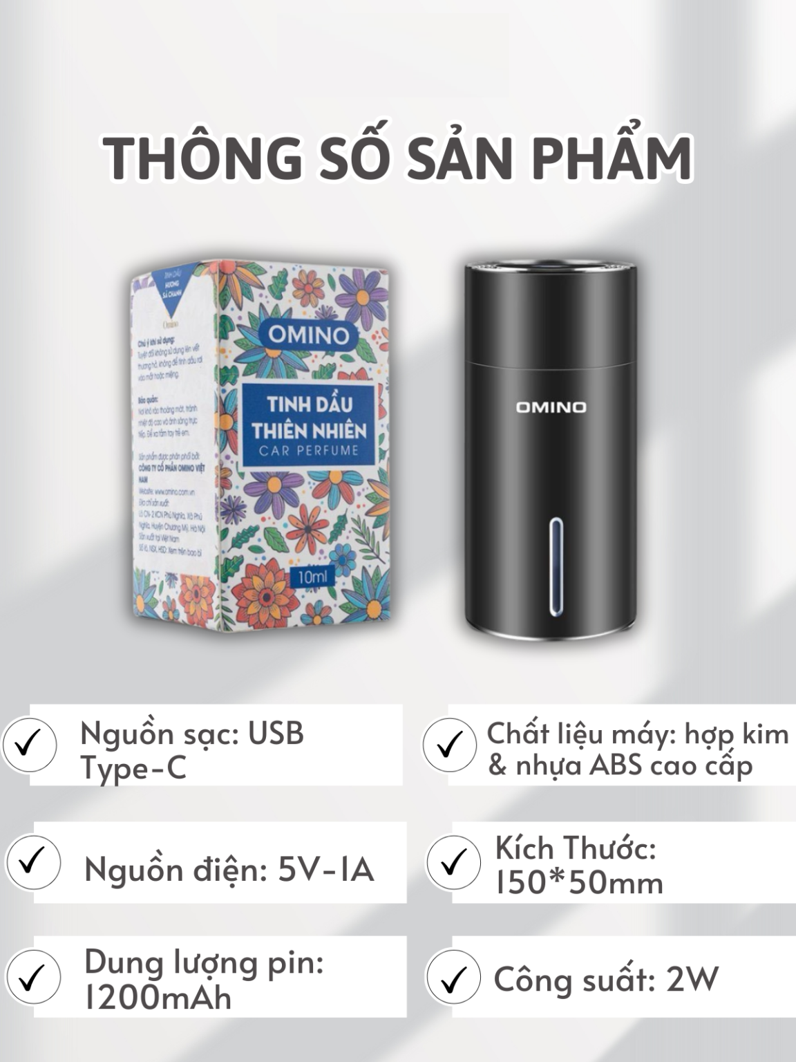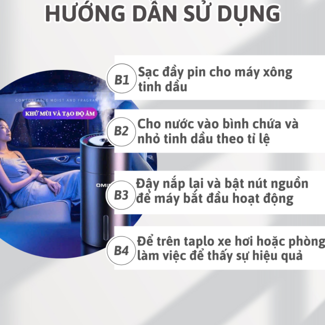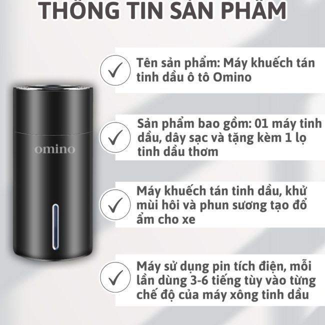 Nếu bạn đang gặp phải những vấn đề trên, thì Máy Khuếch Tán Tinh Dầu OMINO chính là giải pháp hoàn hảo dành cho bạn! Với công dụng khuếch tán tinh dầu, khử mùi hôi và phun sương tạo đổ ẩm, sản phẩm sẽ giúp bạn có những phút giây thư giãn và thoải mái nhất trên xe.