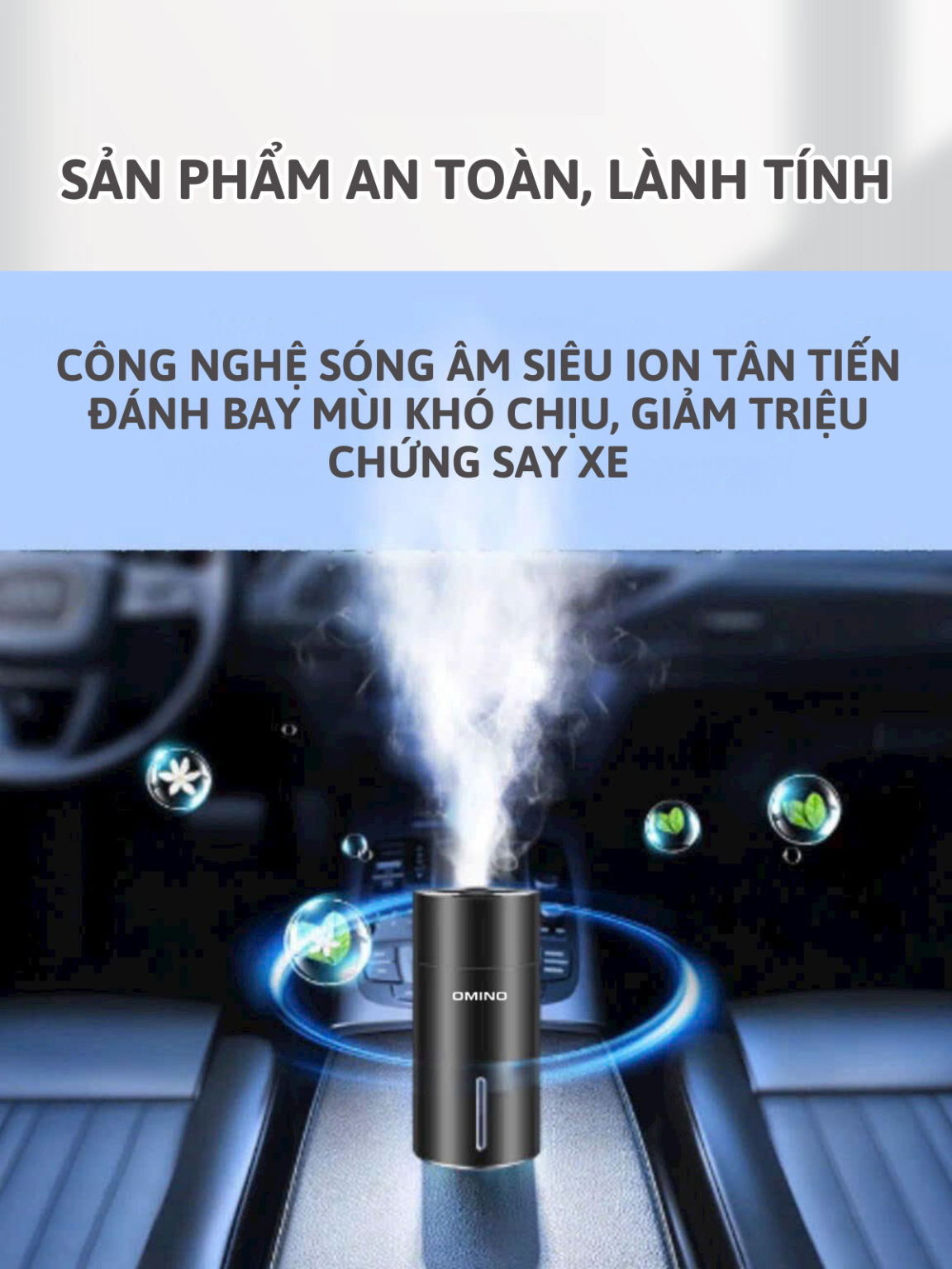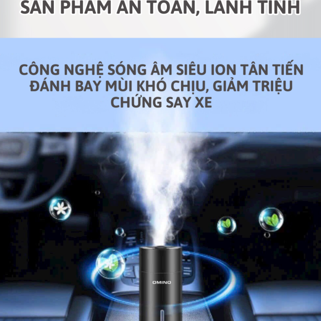 - Sản phẩm cũng đặc biệt phù hợp cho những gia đình có người thân bị say xe. Bạn chỉ cần bật Máy Khuếch Tán Tinh Dầu Omino trước khi khởi hành khoảng 15-20 phút, không gian xe sẽ lập tức trở nên trong lành và dễ chịu, giúp giảm bớt các triệu chứng say xe như buồn nôn, chóng mặt, nhức đầu,…
