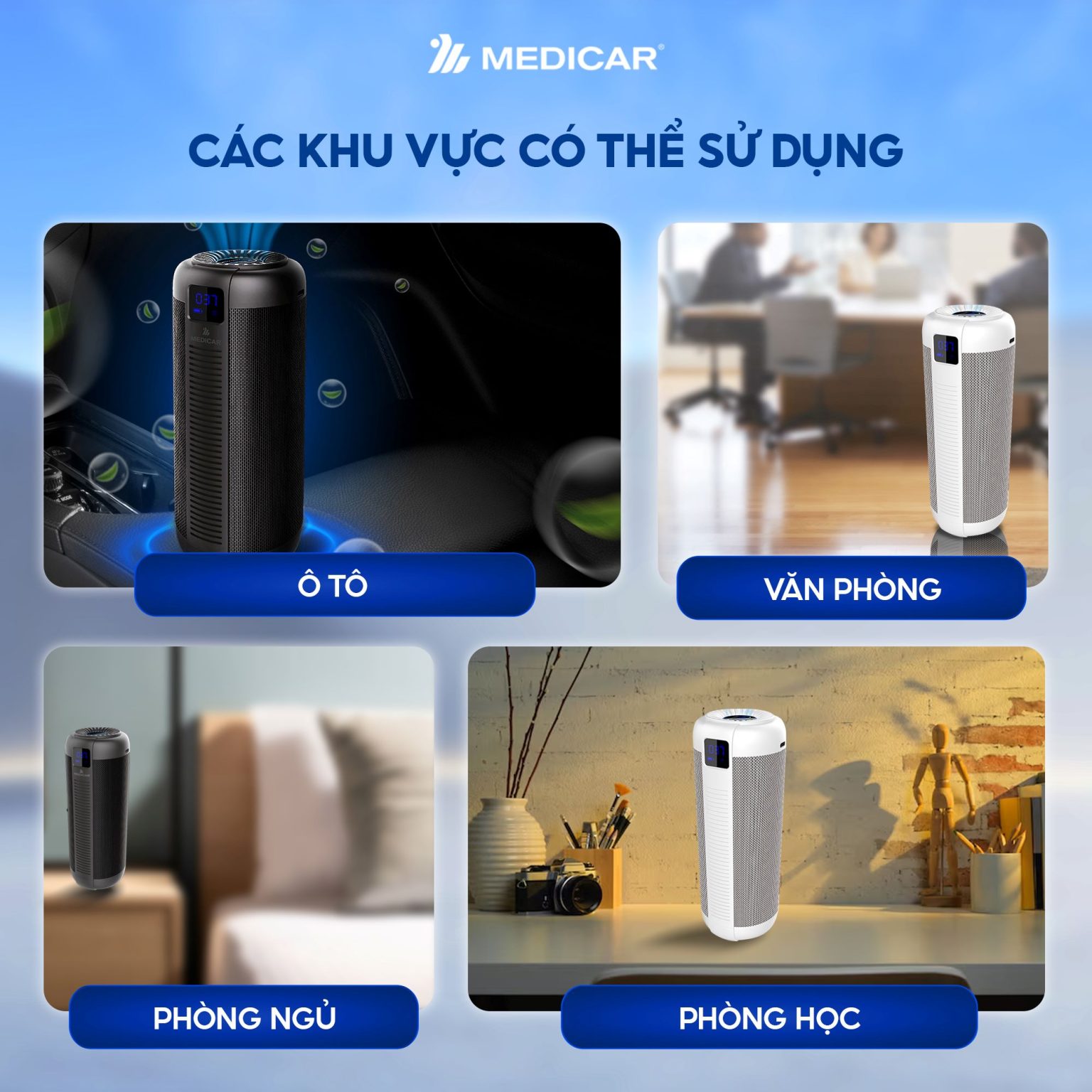 Máy lọc không khí Medicar Pro 4 in 1 là giải pháp hiệu quả cho vấn đề ô nhiễm không khí hiện nay ở các thành phố lớn, giúp loại bỏ các loại bụi mịn siêu nhỏ và các chất gây hại, bảo vệ sức khoẻ của bạn và những người thân yêu.