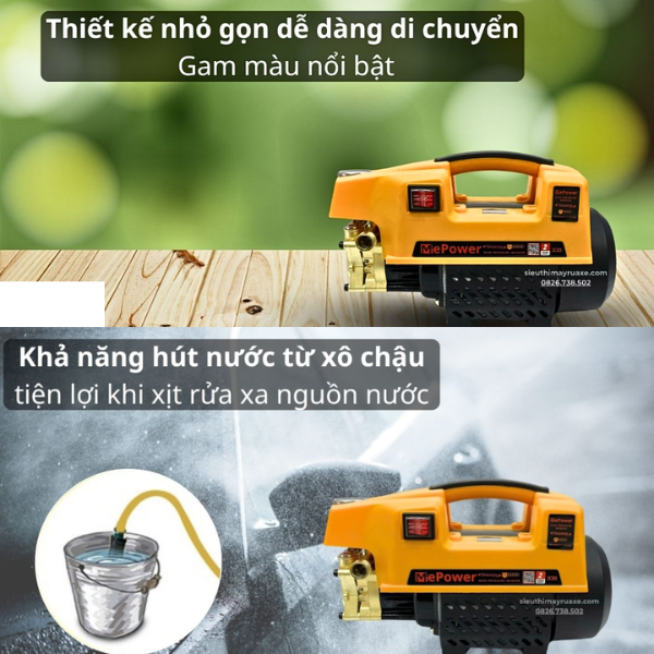 - Khả năng hút nước: Có – tự hút linh hoạt từ xô/chậu