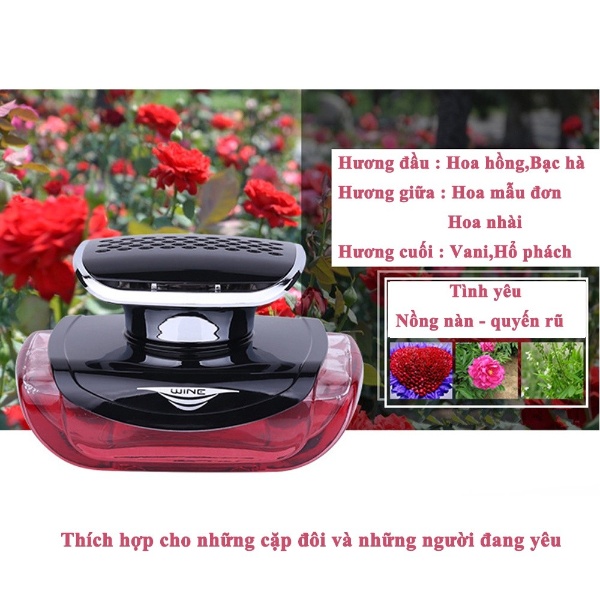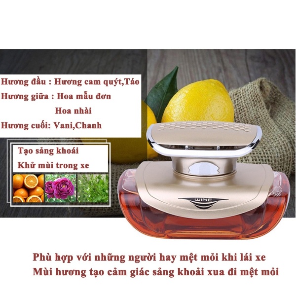 - Nước hoa ô tô WINE cao cấp có tác dụng nổi bật là khử mùi xe, mùi thuốc lá rất hiệu quả. Hương thơm dịu nhẹ giúp chống say xe, làm cho tinh thần luôn thư giãn. Trong những chuyến đi dài, nước hoa sẽ luôn là người bạn đồng hành giúp giảm căng thẳng, mệt mỏi.