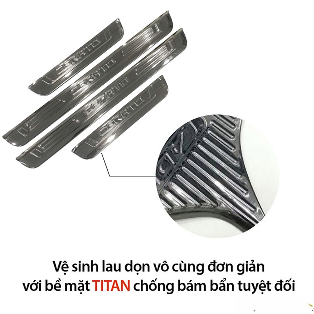 Là ốp bậc cửa xe hơi cao cấp, giúp nội thất sang trọng hơn, sản phẩm không chỉ mang lại công năng bảo vệ mà còn góp phần tạo điểm nhấn tinh tế cho khoang xe. Hiệu ứng ánh kim Titan giúp xe nổi bật, thể hiện phong cách hiện đại và đẳng cấp của chủ nhân.