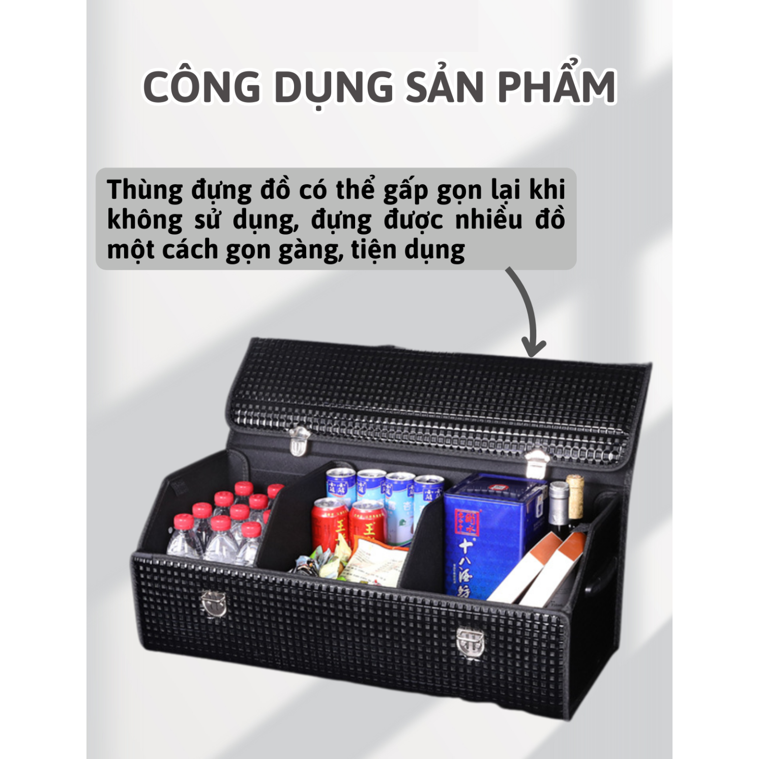 ✔️ Sử dụng trong ô tô, thùng đựng đồ trong nhà, thùng đựng đồ tiện lợi trong văn phòng.