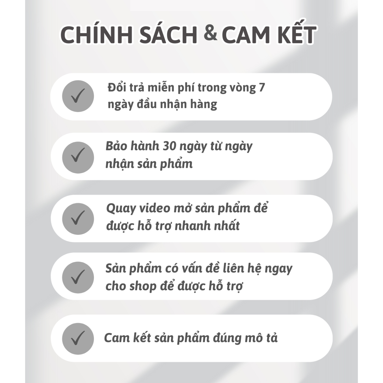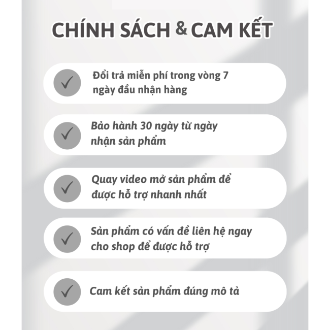 CHÍNH SÁCH VÀ CAM KẾT CỦA SHOP:
